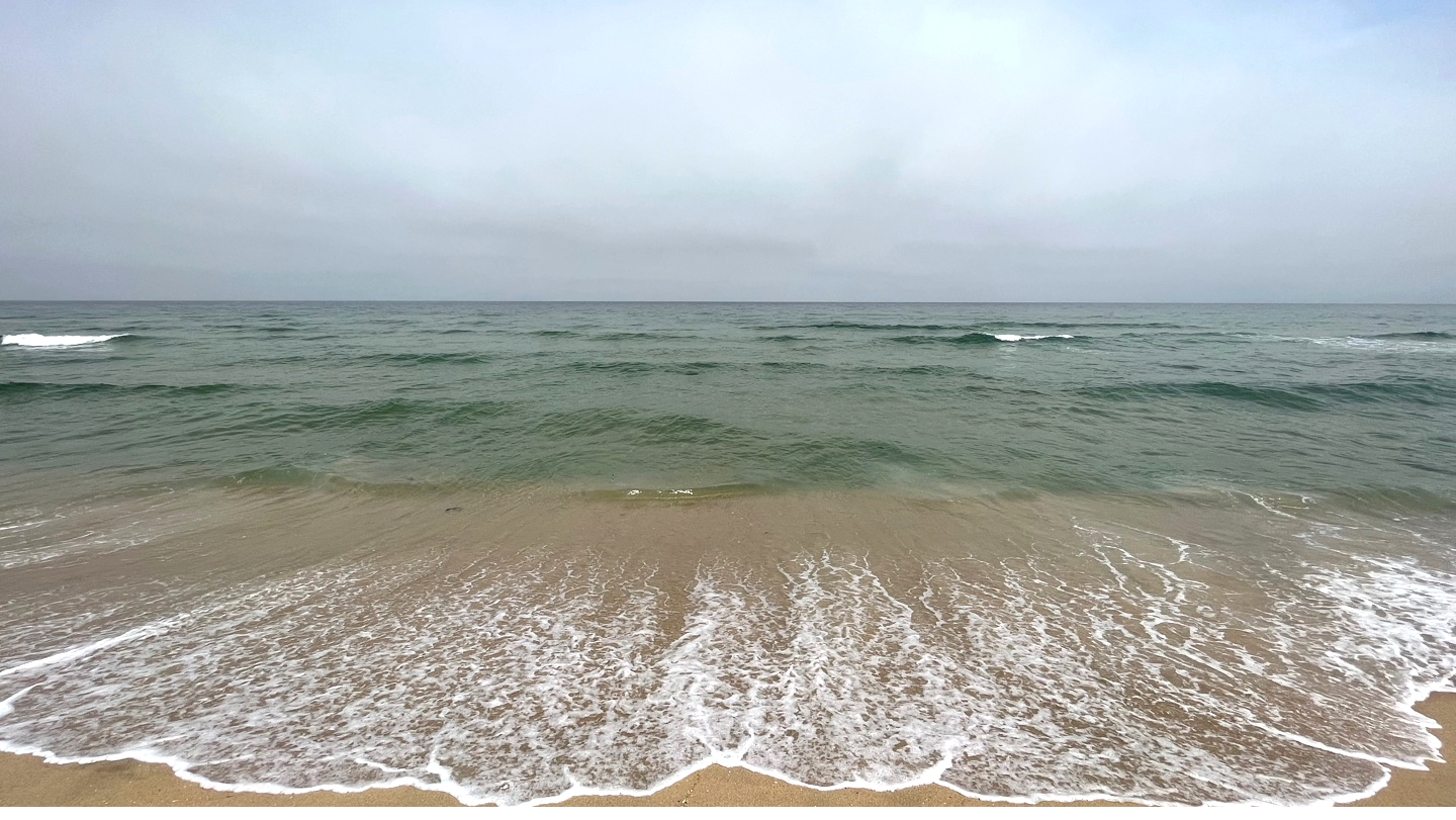 차 한 잔씩 한 후, 카페에서 나와 솔밭을 지나 바다를 한 번 더 봤습니다. 위치를 보니 '강문해변'과 '송정해변' 사이 쯤이었습니다. 약간 흐린 바다였는데 그 모습마저 운치 있고 좋았습니다.
